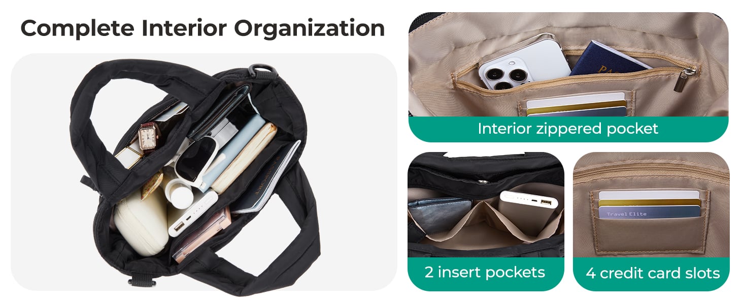 Thoughtful Details: This women’s handbag is equipped with a soft, comfortable handle, an adjustable shoulder strap, smooth zippers, and water-resistant fabric for added durability and convenience.