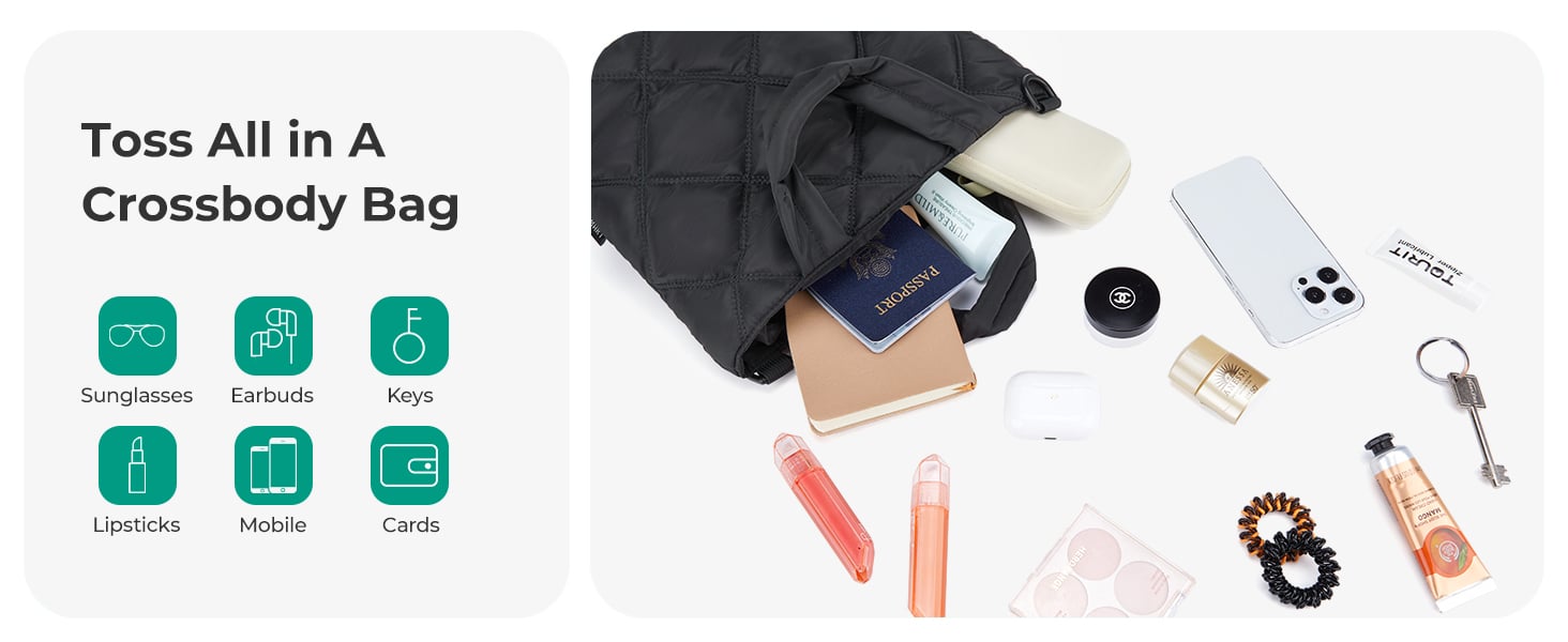 Compact & Lightweight Design: Measuring 12.7" (top length) x 8.7" (bottom length) x 5.5" (width) x 8.7" (height) and weighing just 0.32 lbs, this small crossbody bag offers 8L of space—perfect for carrying essentials like wallet or cardholder, Phone and charger, unglasses, lipstick, wipes, Lip balm, keys, coins, small notebook and pen, tissues and more.